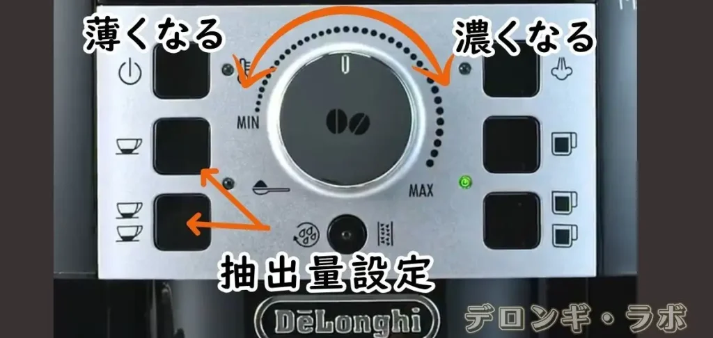 マグニフィカSの初期設定はエスプレッソの抽出量が多めにセットされているため、そのままでは「水っぽい」と感じやすくなります。